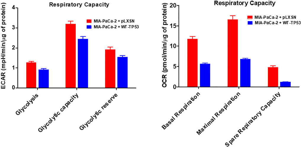 KRAS is another important gene which in mutated in >90% of PDAC. Although many potential Ras inhibitors were developed over the past 25 years, they were not specific to mutant KRas, recently, some have shown promise [34, 35]. As with most drugs, cancer cells have developed mechanisms to become resistant to these inhibitors [36]. In the following studies, we examined the consequences of introduction of WT-TP53 gene in two PDAC cell lines, one lacking TP53 expression (TP53-null) and one cell line with GOF-TP53 [37–39]. Earlier studies performed by us, indicated that inheritance of WT-TP53 increased the ability of some chemotherapeutic drugs, signal transduction inhibitors and natural products to inhibit cell proliferation [40, 41]. In the current studies, we examined the effects of inheritance of WT-TP53 on a larger panel of chemotherapeutic drugs as well the consequences of on other properties important in cancer progression such as clonogenicity, colony formation in soft agar and metabolic properties.