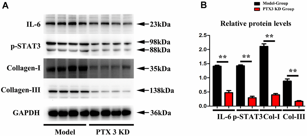 PTX3 KD counteracted myocardial fibrosis by down-regulating IL-6/STAT3 pathway in murine HF after MI