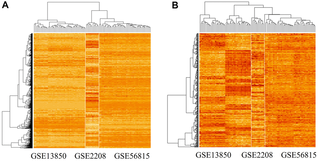 We used the limma package (see Materials and Methods) to detect 378 differentially expressed genes between the high and low BMD groups. The expression patterns of 6354 genes and the identified 378 differentially expressed genes are shown in Figure 2A, 2B, respectively.