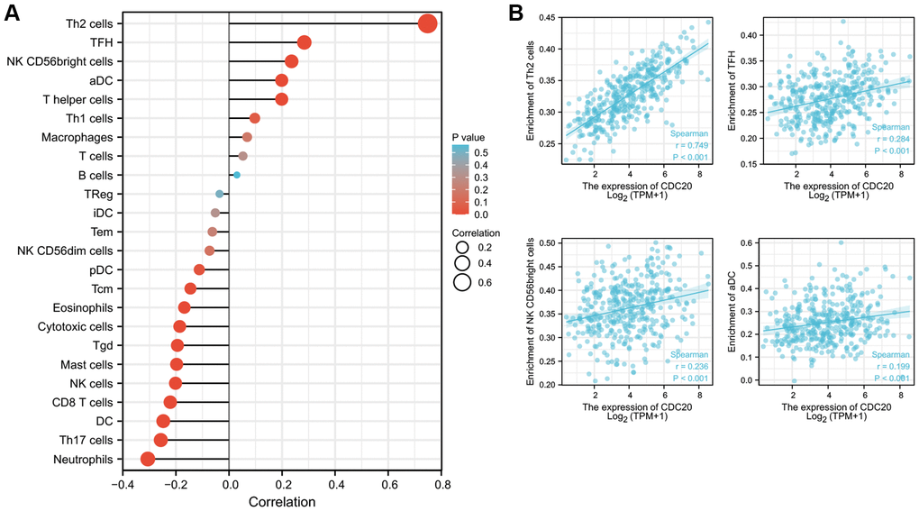 Correlation between CDC20 expression and tumor infiltrating immune cells