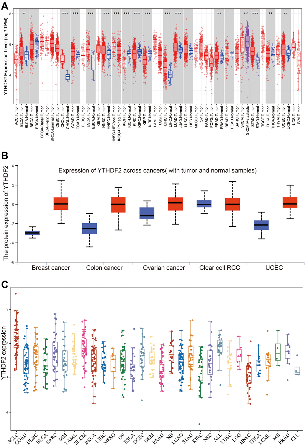 Analysis of the expression and prognosis of YTHDF2