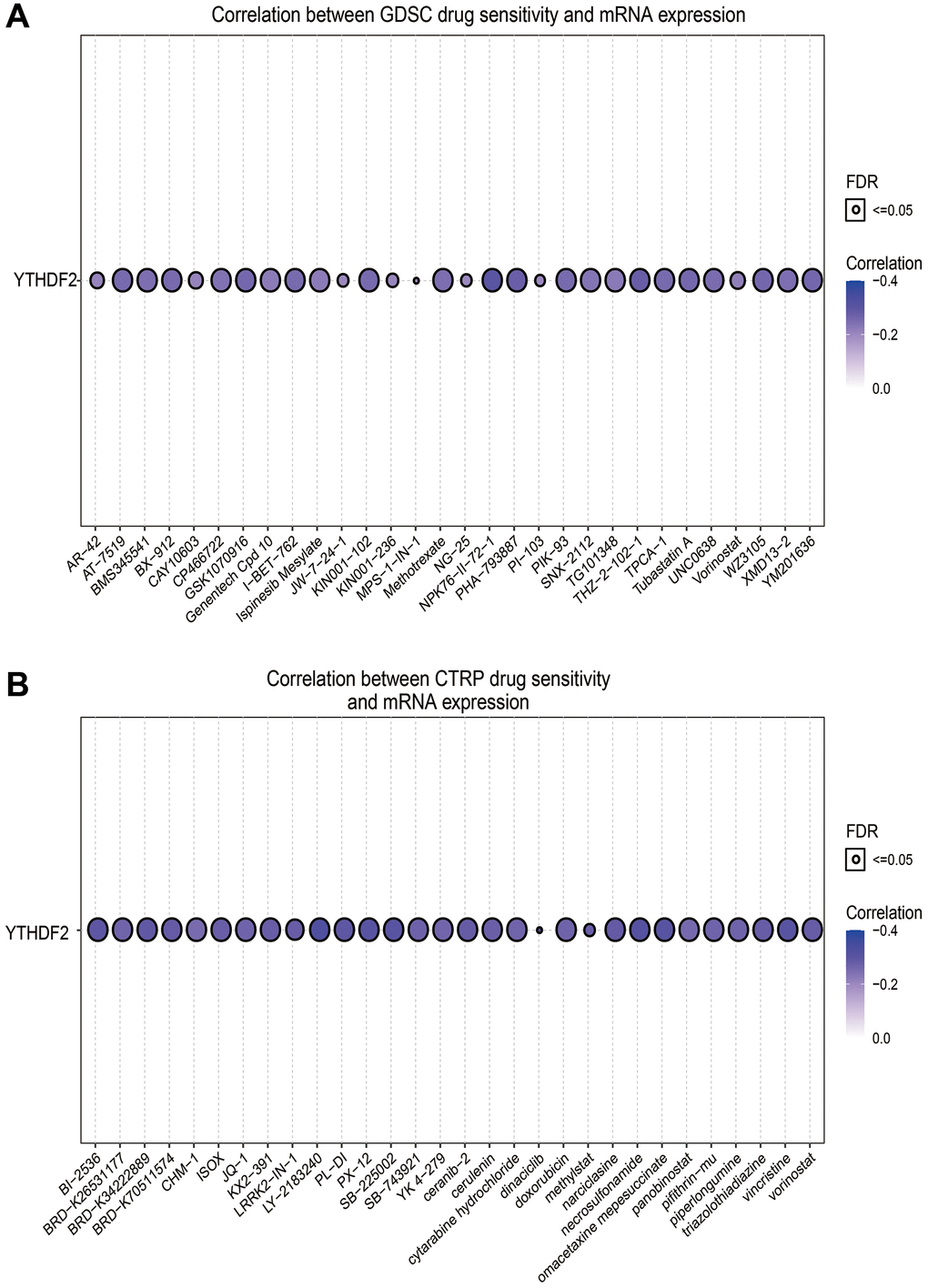 | YTHDF2 | PHA-793887 | −0.2772 | 1.13E-16 |