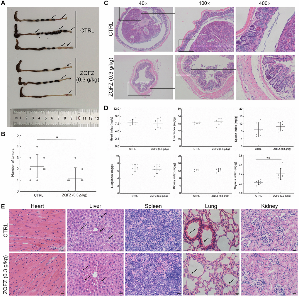 Inhibitory effect of ZQFZ on CRC in ApcMin/+ mice