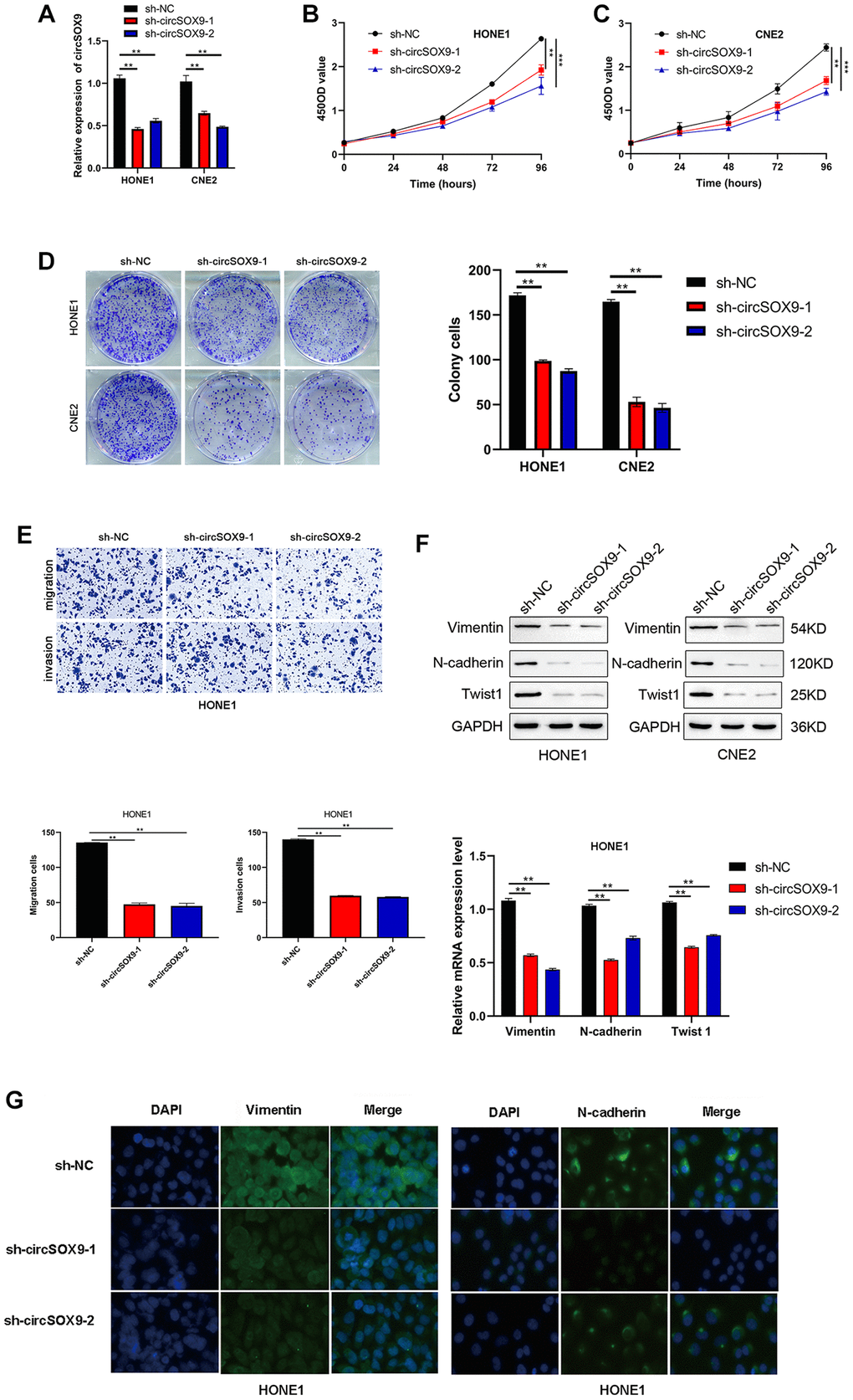 CircSOX9 promotes the proliferation and migration of HONE1 and CNE2 cells