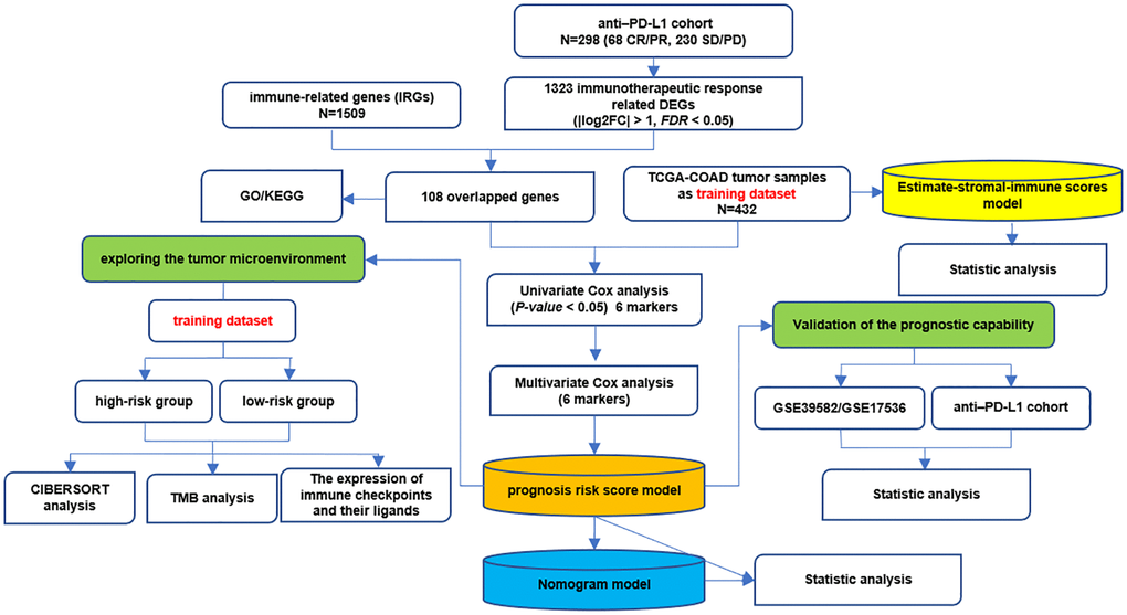 Therefore, it is critical to explore effective and robust novel molecular signatures for predicting the immunotherapeutic responsiveness, prognosis, and diagnosis of patients with colon cancer. The present study focused on the immune-related signatures identified in the anti-PD-L1 cohort and systematically explored their performance in predicting the prognosis, immunotherapeutic responsiveness, and diagnosis of patients with colon cancer.
