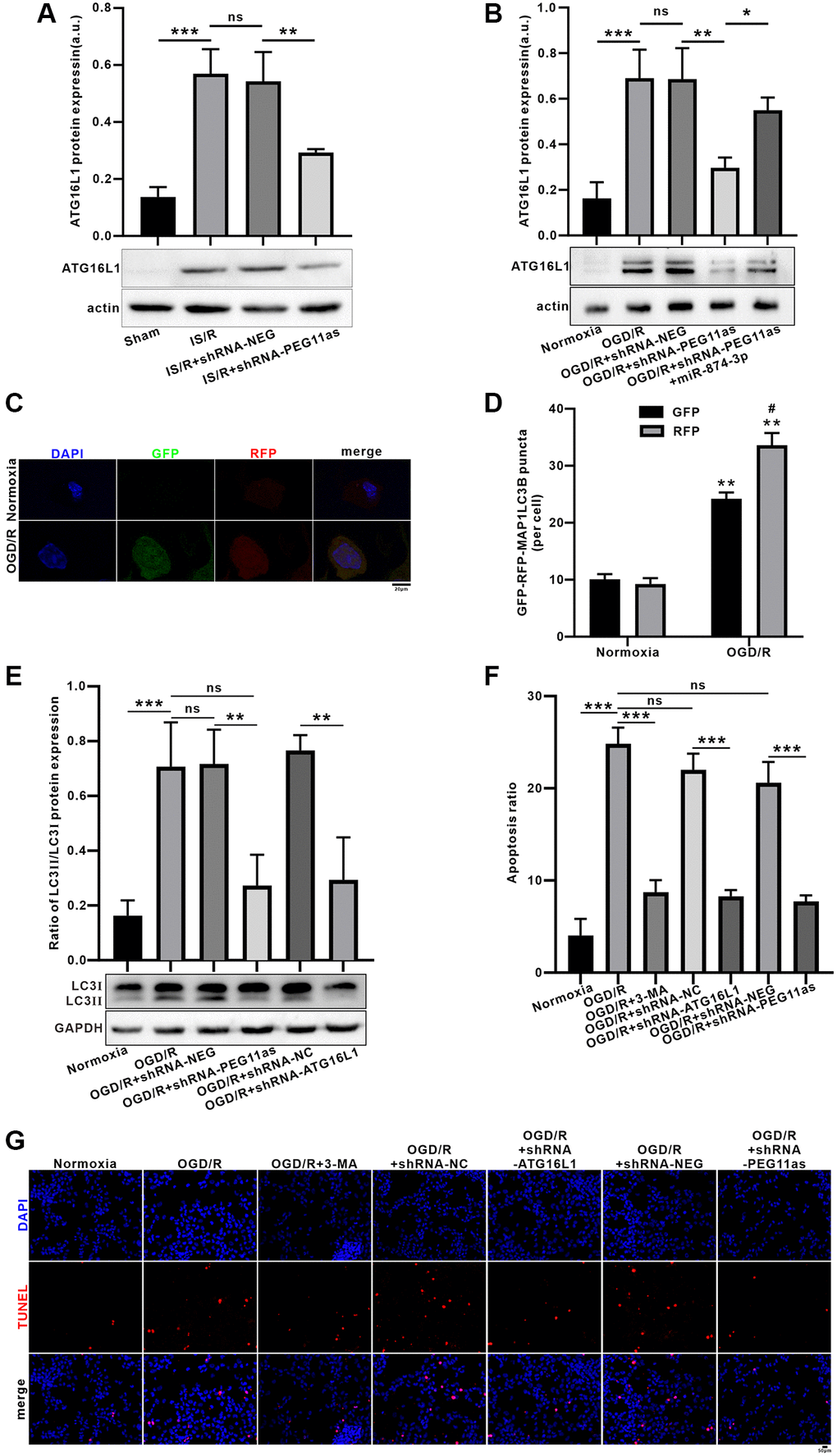 PEG11as silencing inhibits OGD-induced neuronal autophagy and apoptosis via miR-874-3p/ATG16L1 axis