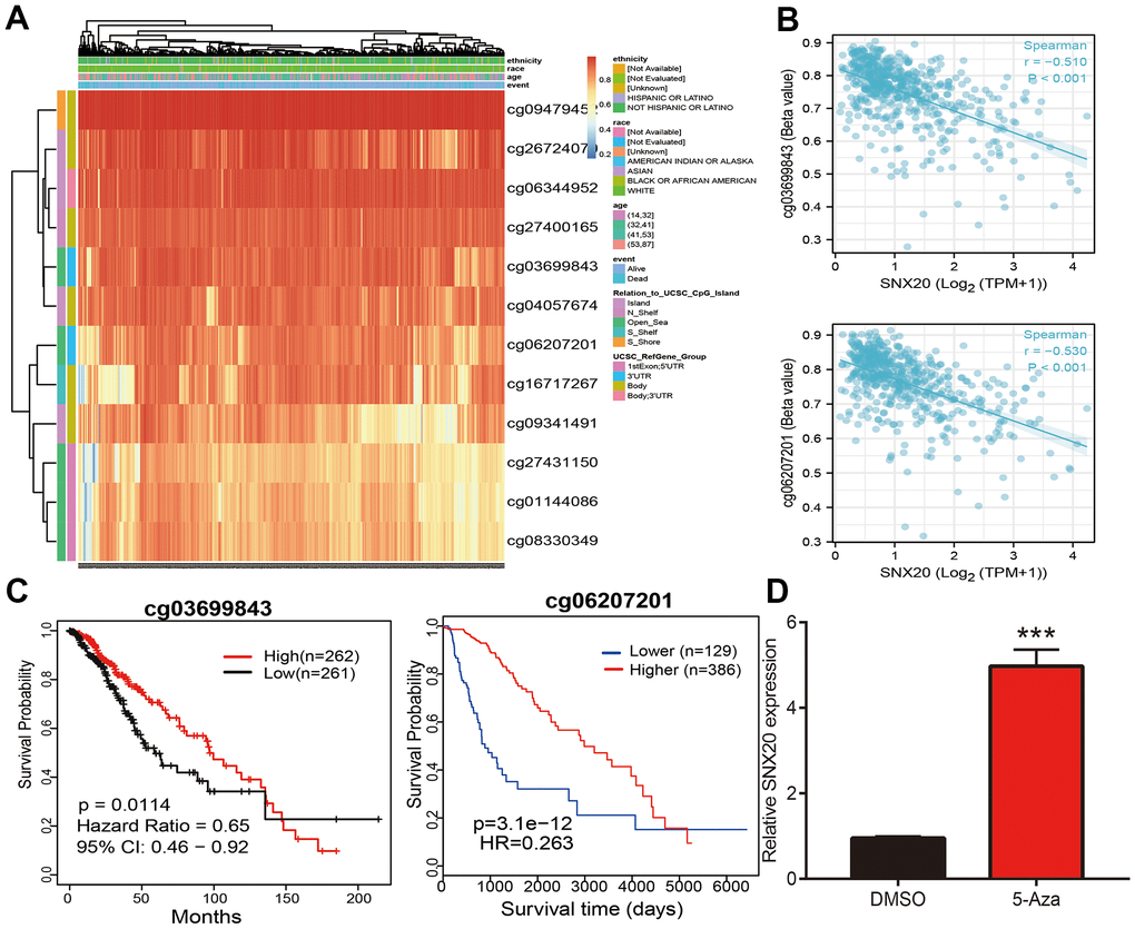 Analysis of the correlation between DNA methylation and SNX20 expression