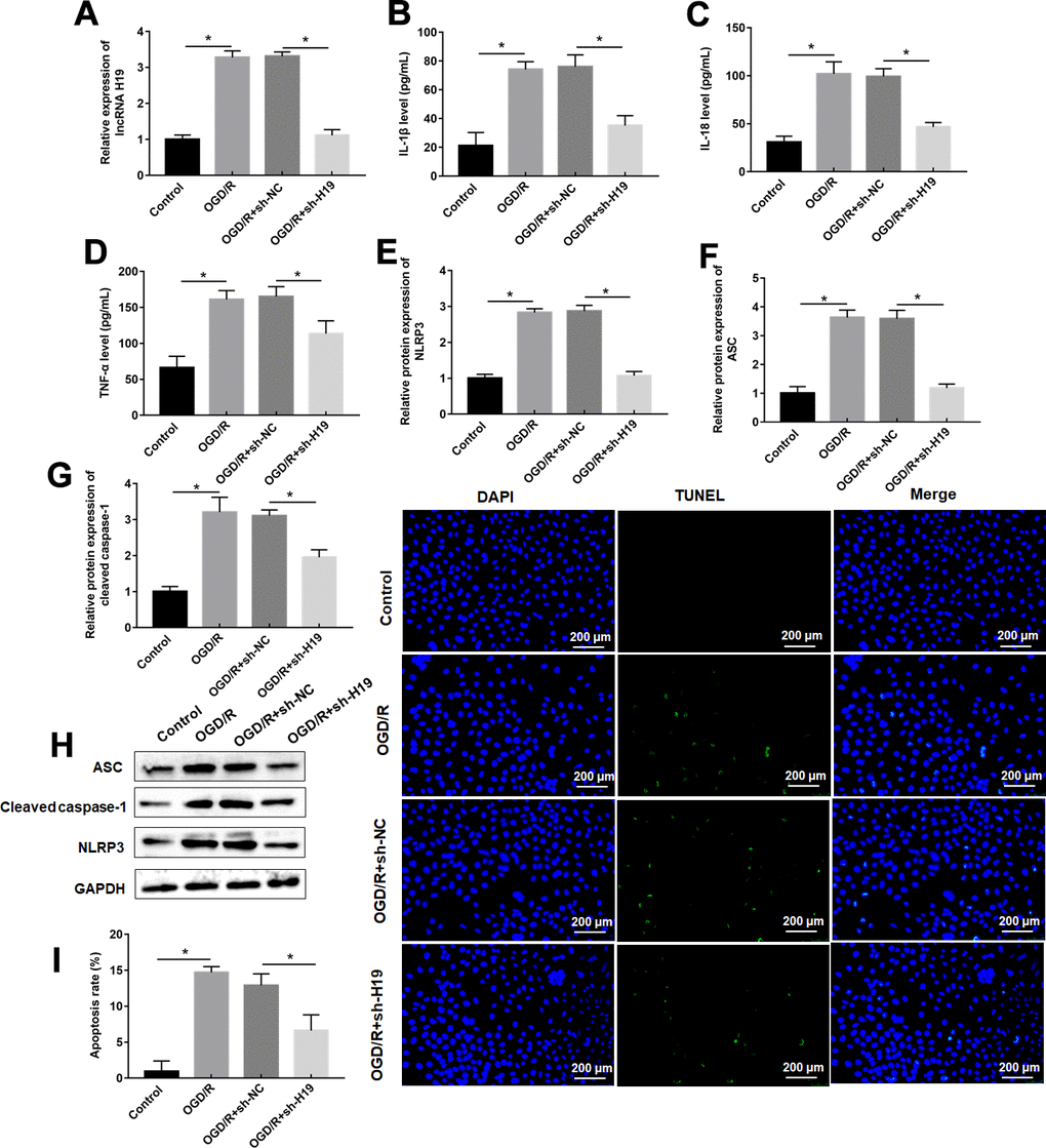 Knockdown of lncRNA H19 reduced OGD/R-induced pyroptosis