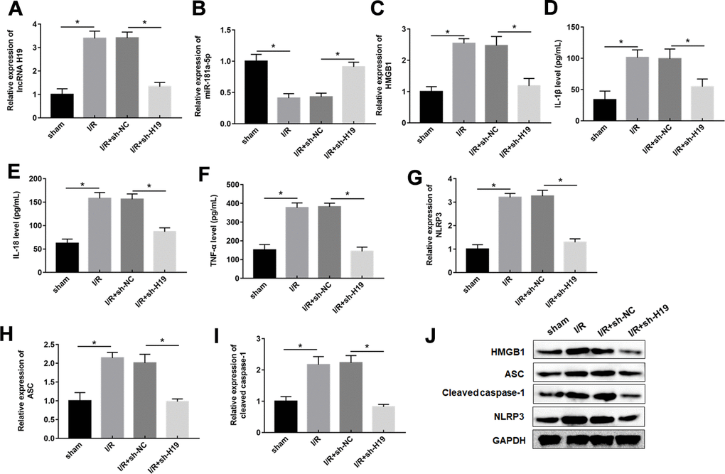 Herein, the action mechanism of lncRNA H19/miR-181a-5p pathway is to be investigated in OGD/R-induced PC12 cells and SCI/R mice models in vivo. Taken together, H19 silence alleviated SCI/R injury through inhibiting neuronal pyroptosis by miR-181a-5p upregulation.
