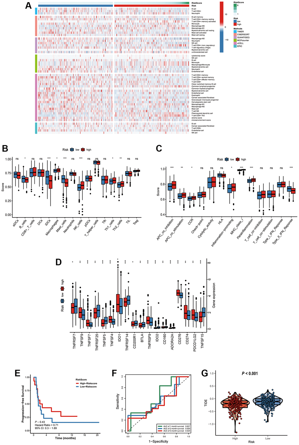 Characteristics of immune microenvironment and immunotherapy sensitivity in two risk factor groups