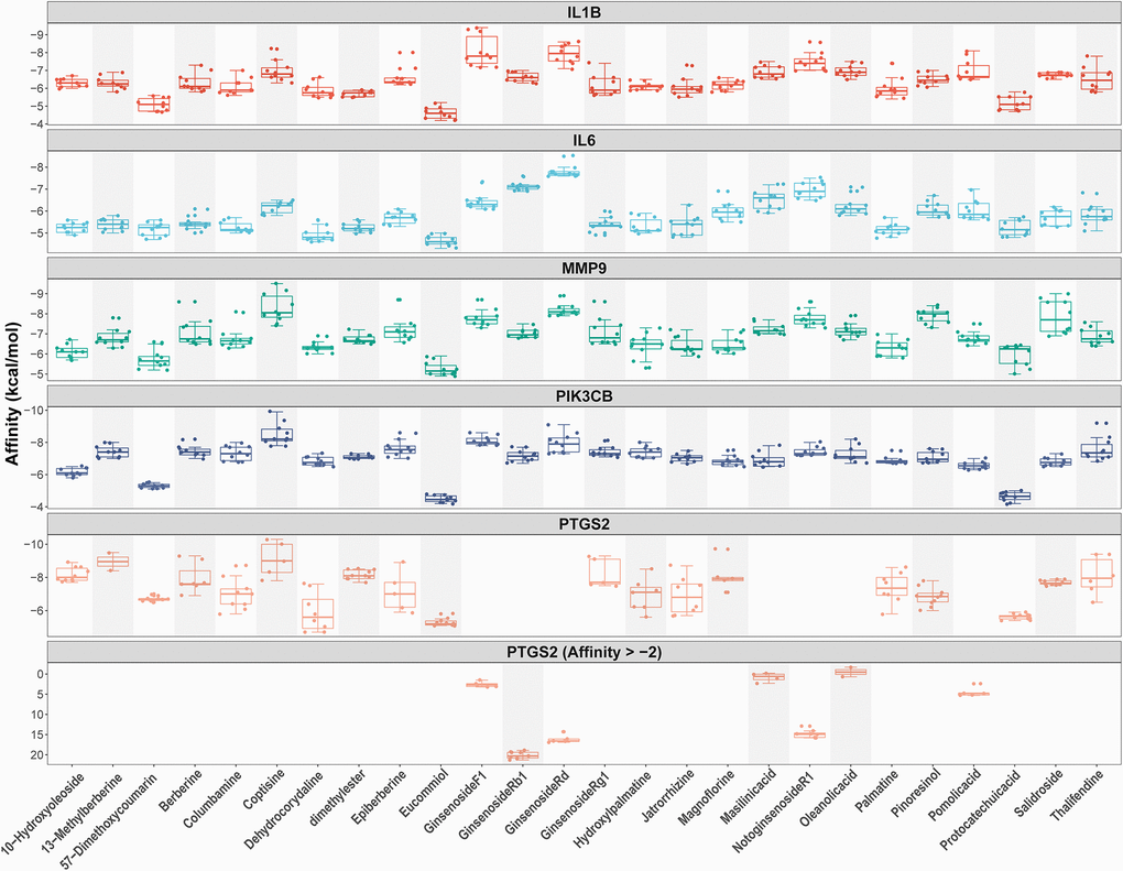 | Coptisine | Ptgs2 | 1CVU | −10.3 |