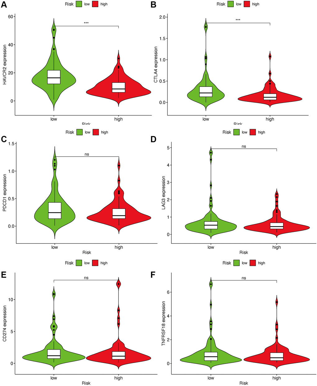 The correlation between riskScores and the ICI markers was investigated by Wilcoxon signed-rank test and further visualized with ggstatsplot package.