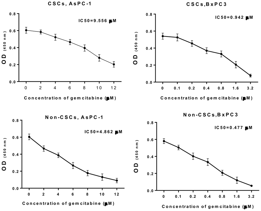 Gemcitabine resistance analysis of CSCs and non-CSCs from AsPC-1 and BxPC-3 cells