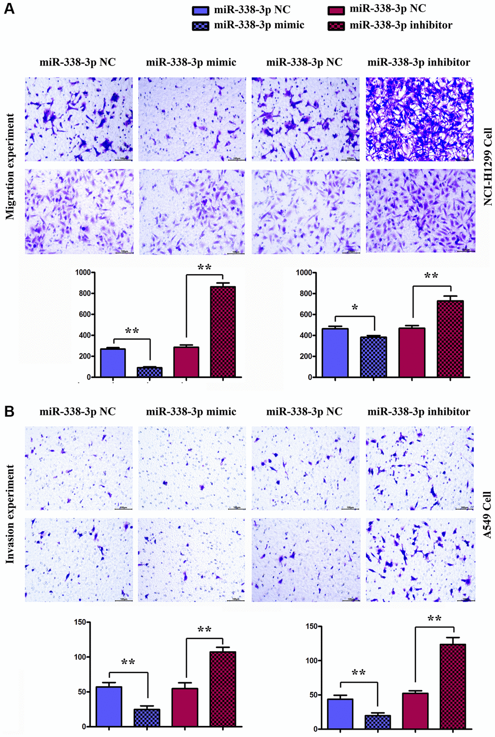 Overexpression of miR-338-3p inhibited the migration and invasion of LUAD cells