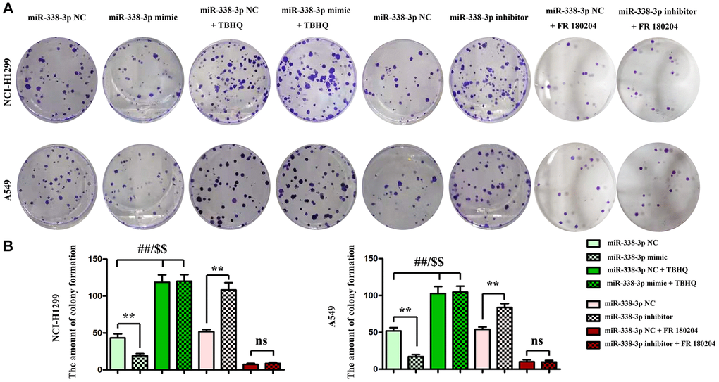 Expression of miR-338-3p/MAP3K2 axis in NCI-H1299 and A549 cells