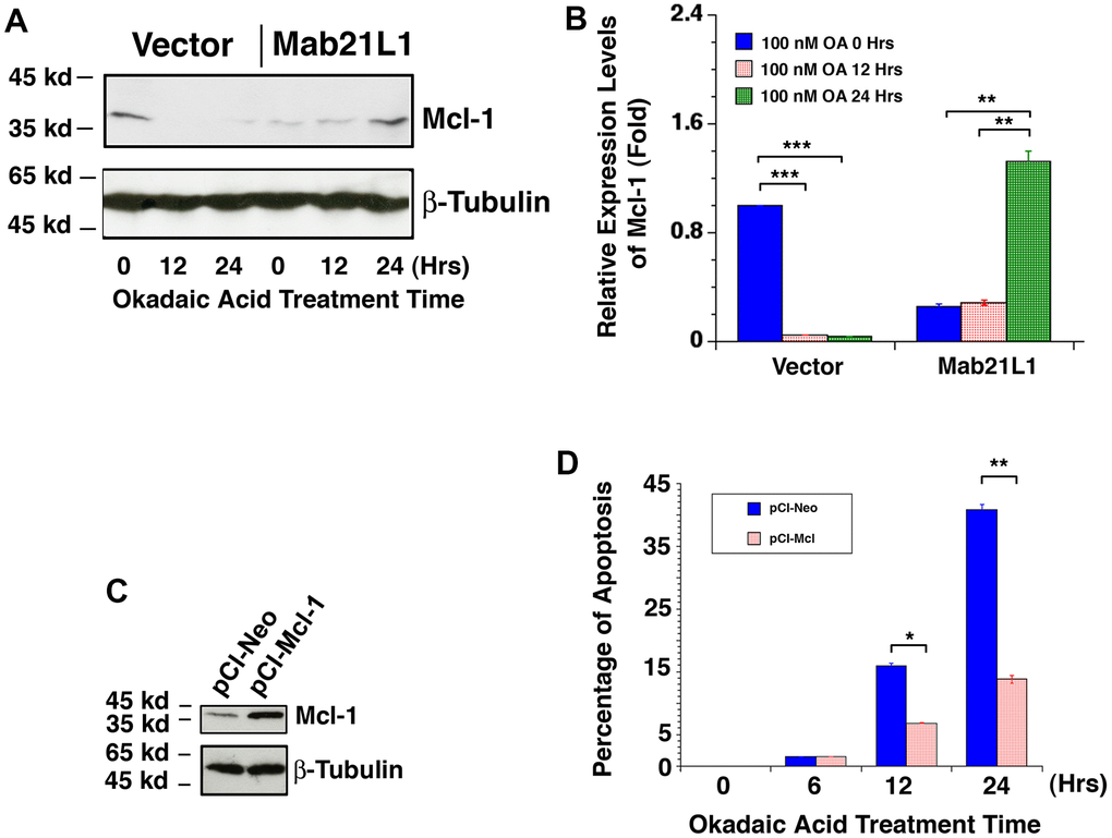 Mab21L1 promotes Mcl-1 expression during OA-induced apoptosis and overexpression of Mcl-1 suppresses OA-induced apoptosis