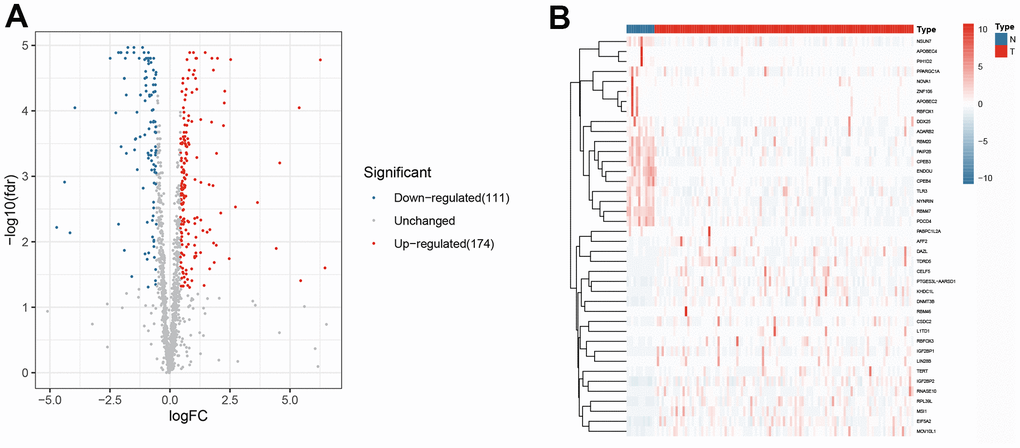 The research design is illustrated in Figure 1. According to the screening criteria (adjusted p-value < .05, | log (FC) | ≥ 0.5), 285 DERBPs were identified (Supplementary Table 3). Among them, 111 down-regulated and 174 up-regulated DERBPs were identified (Figure 2).