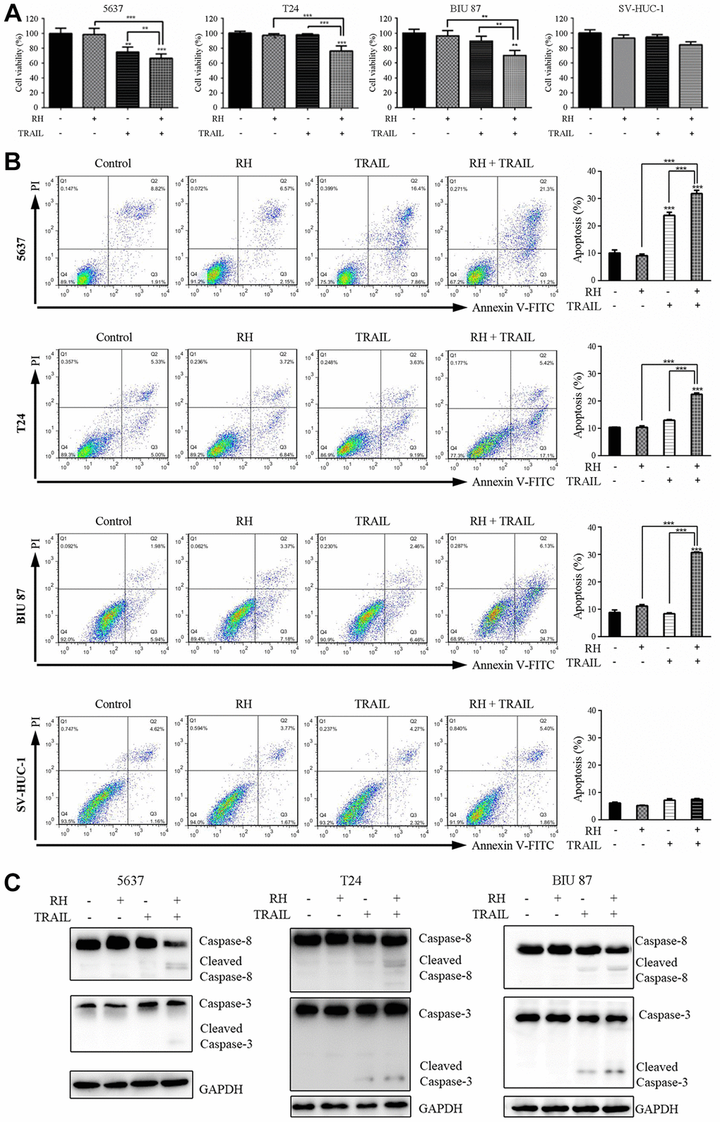RH enhanced the sensitivity of TRAIL in TRAIL-resistant bladder cancer cells