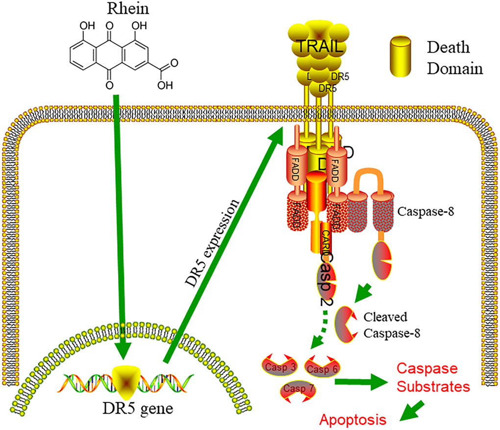 - 19. Chang CY, Chan HL, Lin HY, Way TD, Kao MC, Song MZ, Lin YJ, Lin CW. Rhein induces apoptosis in human breast cancer cells. Evid Based Complement Alternat Med. 2012; 2012:952504. https://doi.org/10.1155/2012/952504 [PubMed]