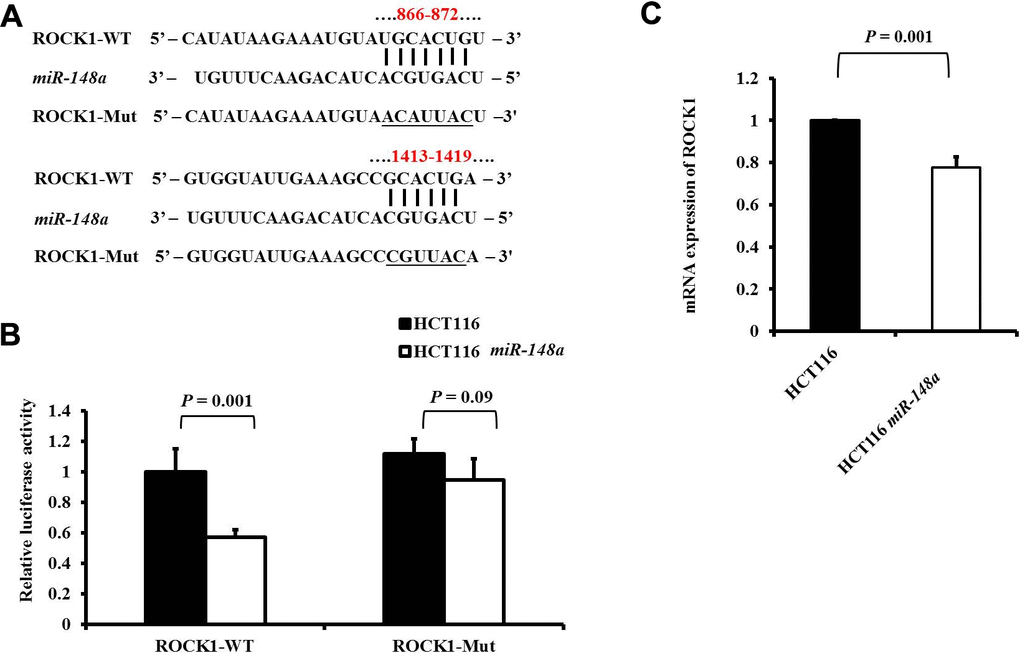 miR-148a posttranscriptional directly reduced ROCK1 and c-Met expression by targeting its 3′-UTR