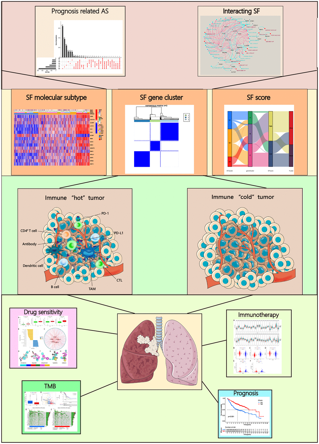 We demonstrated some of the extensive regulatory mechanisms underpinning AS events in the TME. Difference in AS events and SF patterns between patients are factors that cannot ignored and may cause TME heterogeneity and complexity in individuals. A comprehensive evaluation of individual tumor AS events and SF patterns will enhance our understanding of TMEs and guide more effective therapeutic strategies for lung cancer.