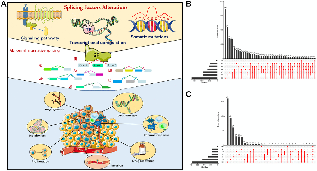 Alternative splicing (AS) is a crucial process in most gene expression and generates more than one mRNA from a single gene locus to then generate distinct proteins [1, 2]. More than 90% of human genes undergo AS, with variability between tissues [3]. Studies have shown that AS defects significantly affect cell development and underlie many diseases, including different cancers, as selective AS allows cancer cells to generate isoforms that benefit cell survival [4, 5]. Also, AS affects tumorigenesis by influencing genome instability [6] and gene mutations, other cancer hallmarks [7]. Splicing factor (SF) dysregulation is the main cause of aberrant AS, with SFs functioning as both oncoproteins and tumor suppressors [8].