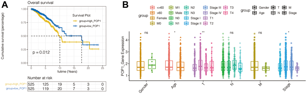 Survival analysis of POP1 to explore its prognostic value