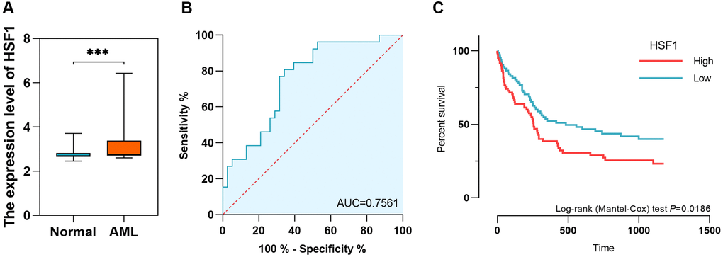 In summary, HSF1 was screened as a potential diagnostic and prognostic biomarker for AML patients. The leukemogenesis mechanisms of HSF1 are a multifactor regulatory process that is involved in inflammatory states, leukemia stem cell metastasis and related signaling pathways. This study comprehensively elucidated the clinical significance and potential functions of HSF1, which provides a perspective to understand the complex molecular network of leukemogenesis.