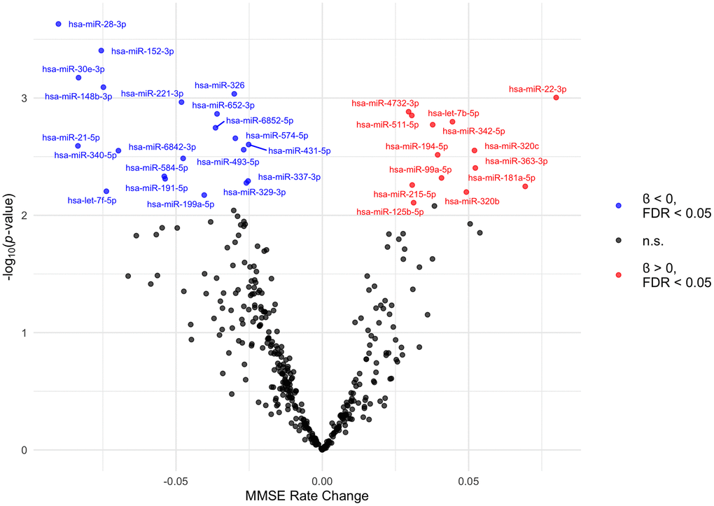 Table 4. Plasma miRNAs (33) associated with trajectories of MMSE scores over follow up time (N = 530).
