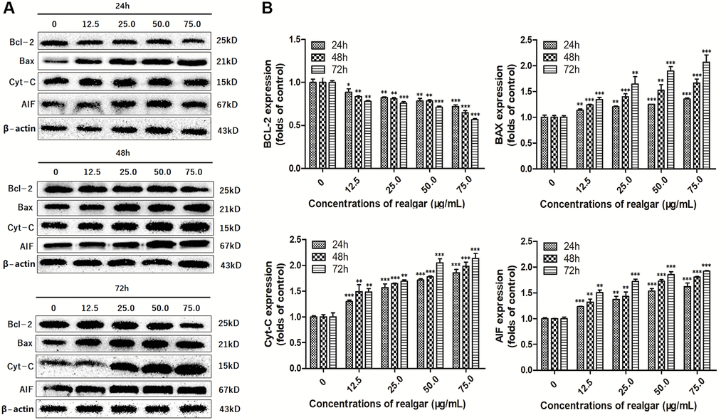 Bcl-2, Bax, Cyt-C, and AIF protein expression