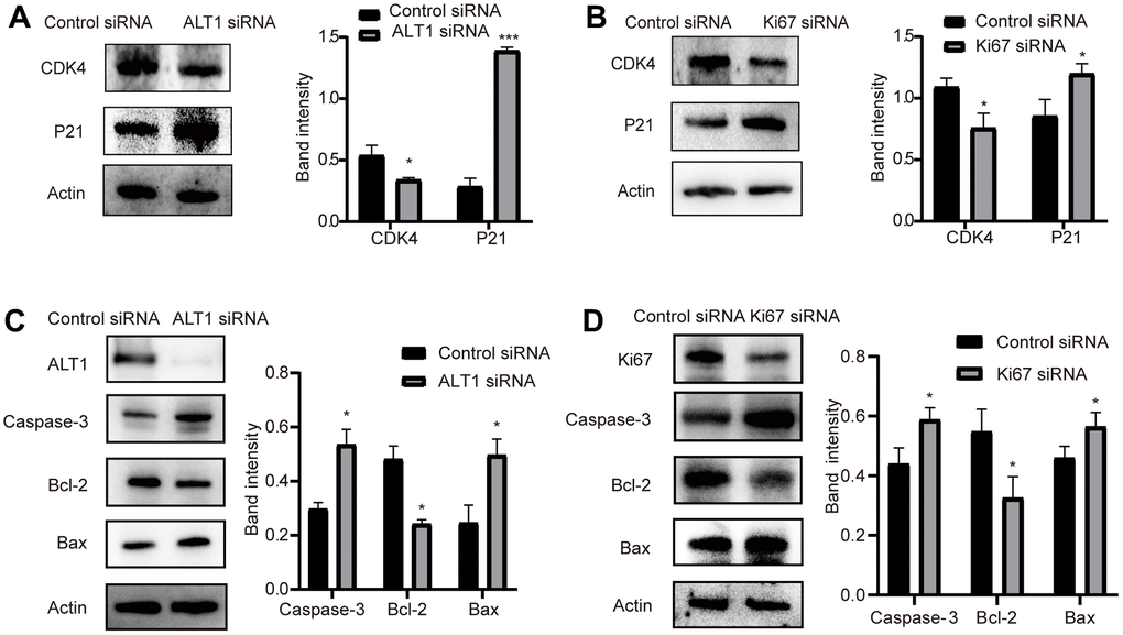 Effects of ALT1 and KI67 knockdown on the expression of markers of proliferation and apoptosis