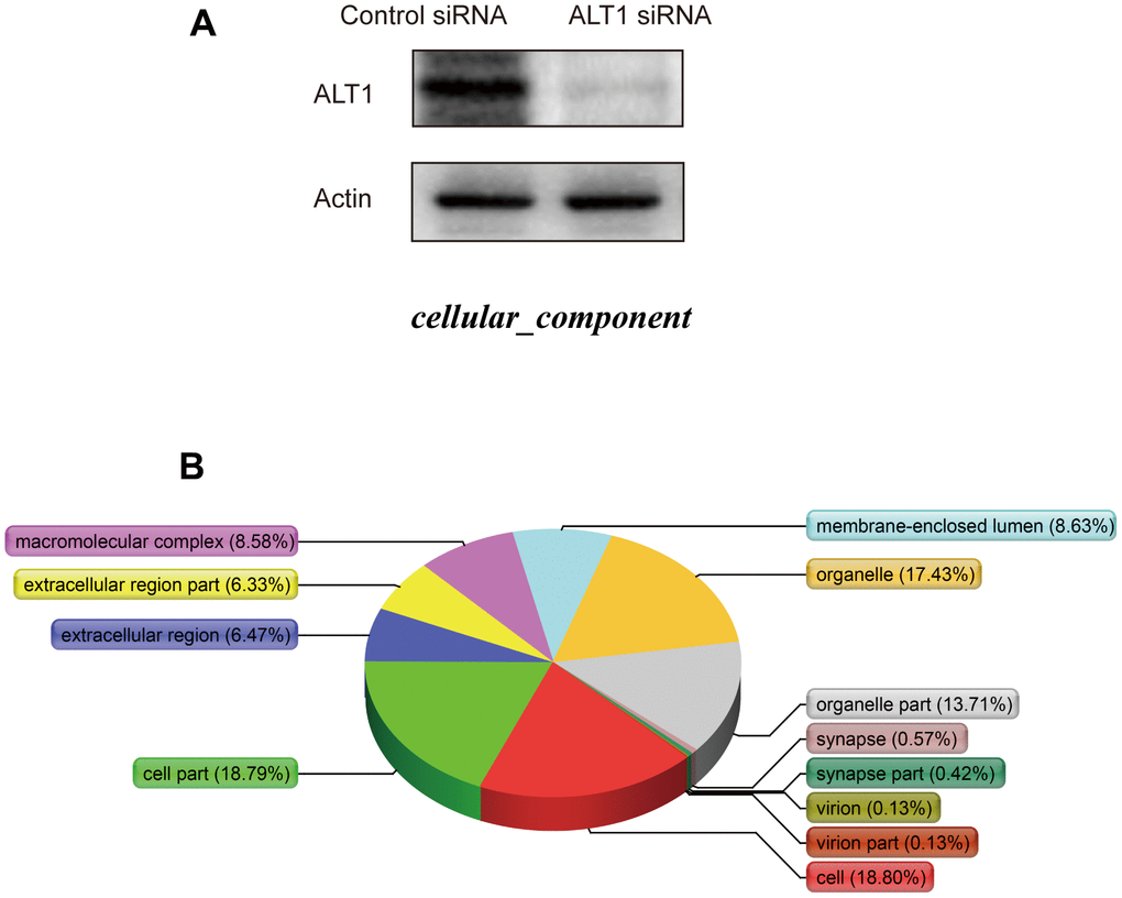 We conducted western blot analysis with un-transfected L02 (normal liver cell) and liver tumor cell lines Hep3B, HepG2, and Huh7. The expression of ALT1 in HepG2 cells was not only higher than in the other liver cancer cell lines, but also greater than in L02 (Figure 2A). Therefore, the HepG2 cells were utilized for subsequent experiments.