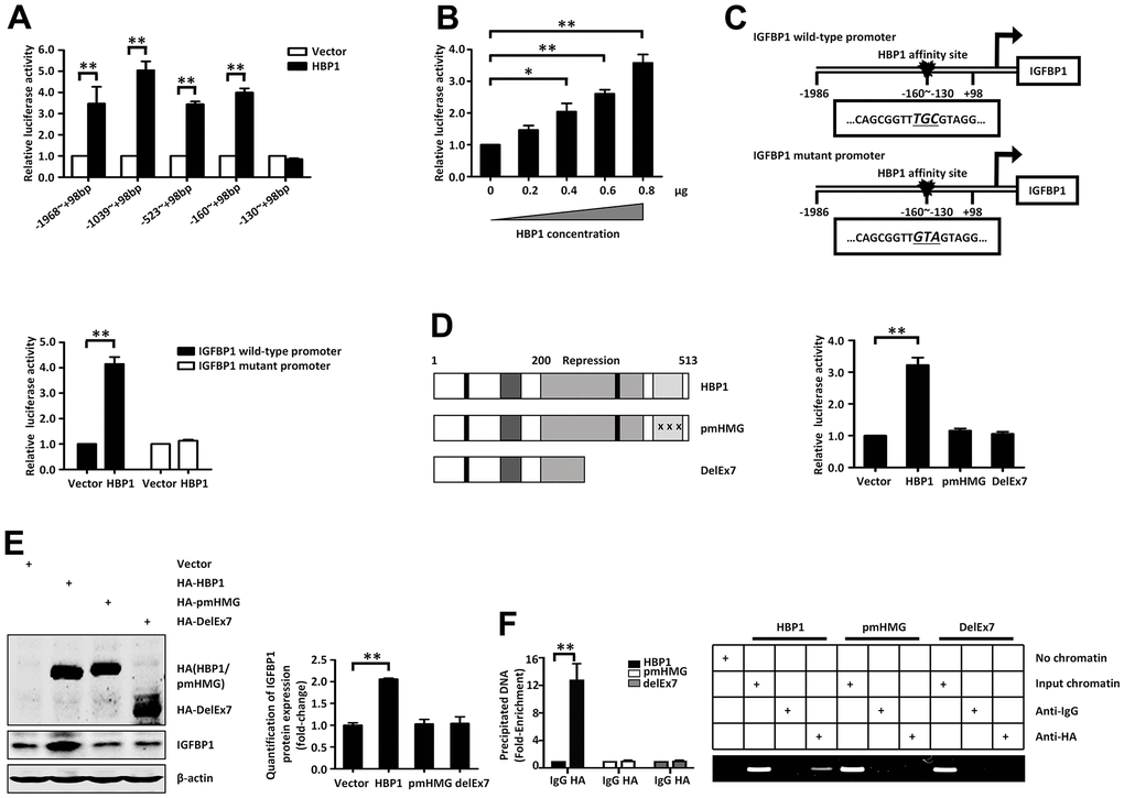 HBP1 increases the expression of IGFBP1 through a transcriptional effect