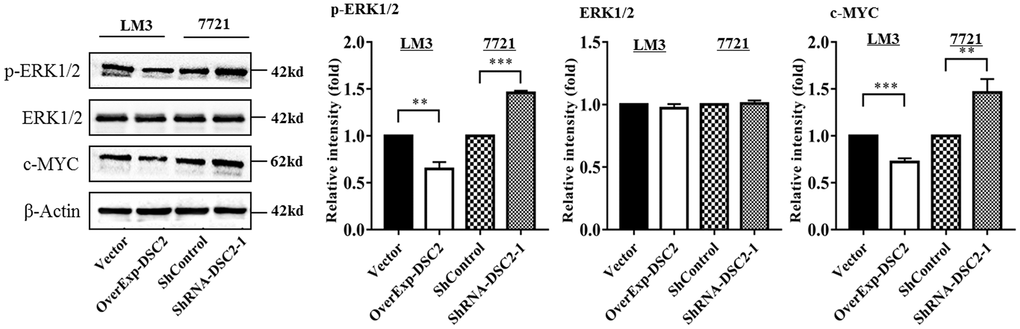 DSC2 expression levels affected the ERK/c-MYC signaling pathway