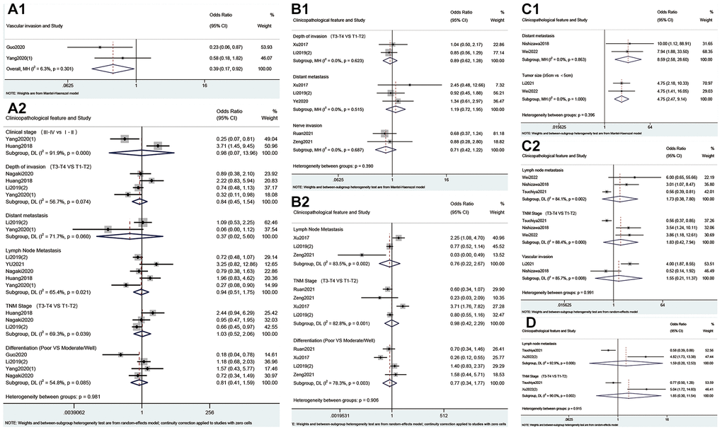 | Lymph Node Metastasis | 13 | 1421 | Liu 2020; Chen 2021; Guo 2022; Sun 2020; Lin 2022; Xia 2020; Xu 2022 (1); Xia 2019; Hua 2018; Lu 2020; Wang 2020; Yang 2020 (2); Xu 2021 | 2.37 (1.58–3.56) | 0.000 | 63.7 | 0.001 | Random | |||||||||||||||||||||||||||||||||||||||||||||||||||||||||||||||||||||||||||||||||||||||||||