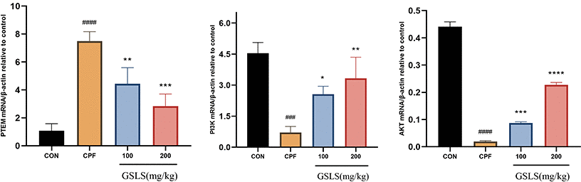 In summary, it is demonstrated in this work that CPF exposure can trigger apoptosis in mouse hippocampal neurons by blocking the antioxidant enzyme activity, which will cause ROS, trigger OS, and enhance mitochondrial apoptotic pathway. Besides, GSLS abolishes the above impacts by PTEN/PI3K/AKT pathway. Moreover, our results provide a certain foundation for future GSLS treatment of pesticide-induced brain toxicity injury and promotion of animal health.