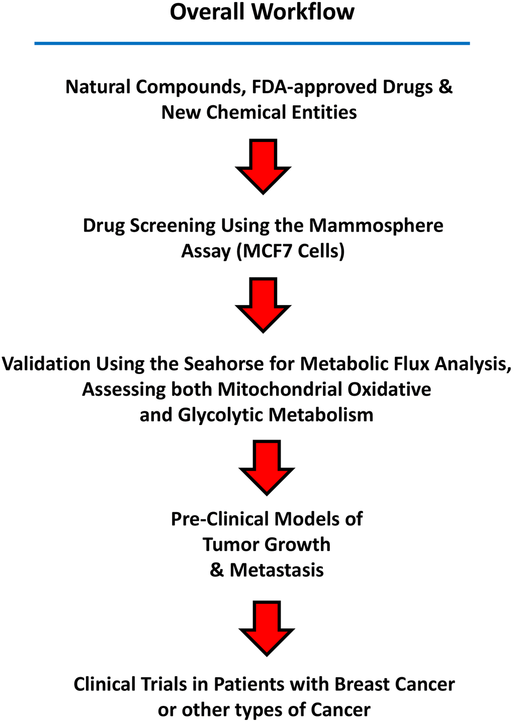 Here and in previous reports, we have identified numerous chemical entities, with anti-mitochondrial activity, that can target and eradicate CSCs in vitro. Figure 12 shows a summary diagram that illustrates the workflow of this experimental screening and clinical strategy. A relatively comprehensive list of these compounds can be found in the following review article [94].