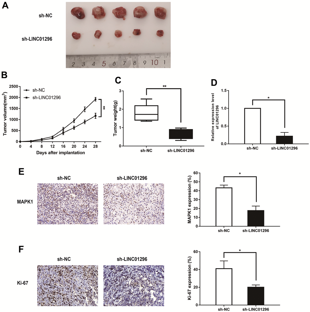 knock-down of LINC01296 contributed to suppress tumorigenesis in vivo