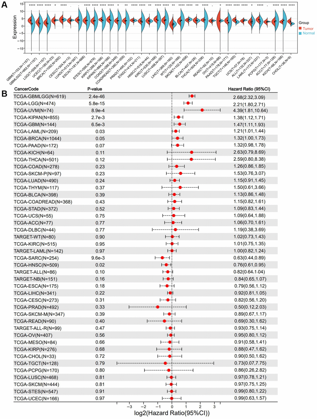 In addition, we have access to TCGA’s pan-cancer clinical data database in order to improve survival outcomes. In addition, samples with fewer than 30 days of follow-up were removed, and each expression value was transformed using log2 (x + 0.001) both of these processes were taken to guarantee accurate findings. In addition, we excluded cancer species with fewer than 10 samples within a single cancer species, resulting in the expression data of 44 cancer species.