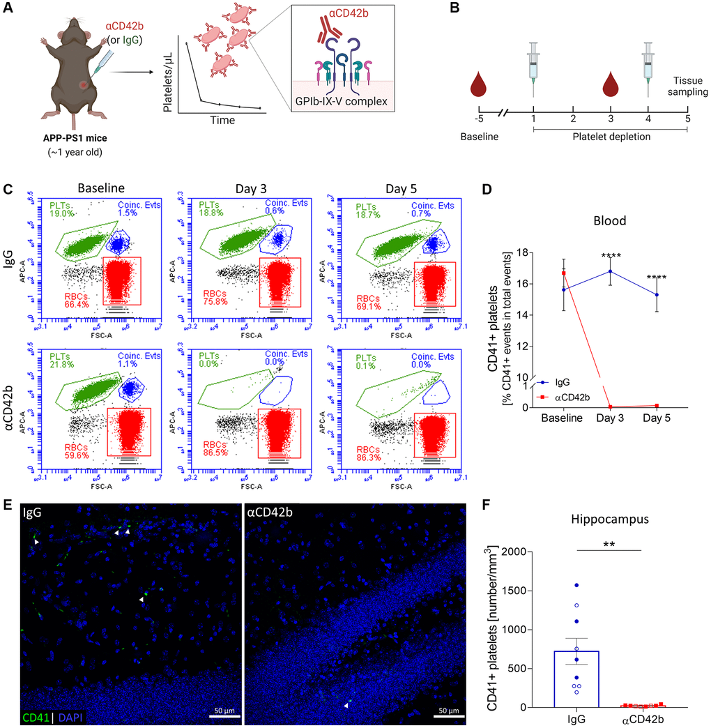 Anti-CD42b antibody injection induces platelet depletion in APP-PS1 mice