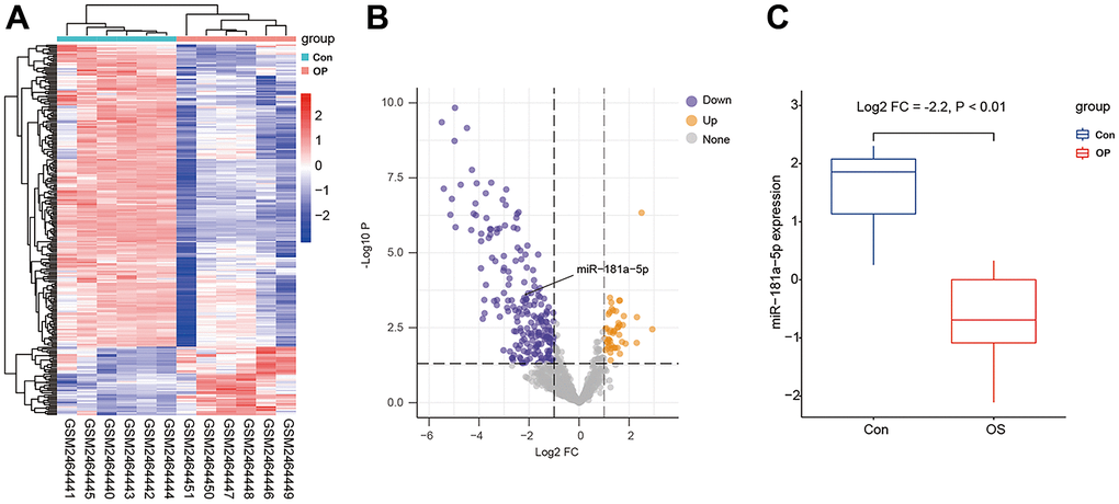 Thus, in this study, the expression of miR-181a-5p in subjects with osteoporosis was investigated after screening miRNAs with varying expression from a Gene Expression Omnibus (GEO) dataset. We tested whether it could control osteogenesis in both MC3T3-E1 cells and senile osteoporotic mice and further explored the potential mechanism.