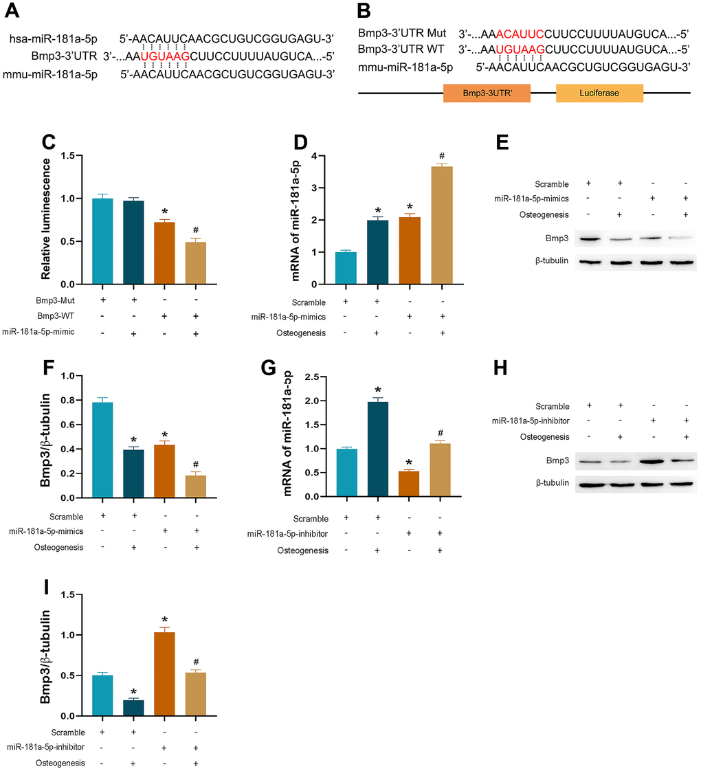 MiRNAs are single-stranded RNAs that have a length of 19–24 nucleotides [3, 4]. They are first transcribed from the genome into primary miRNAs before undergoing transformation into precursor and mature forms [4]. Numerous biological processes, such as apoptosis, the development of cancer, osteoblastogenesis and osteoclastogenesis, have been linked to microRNAs [5–7]. Previous studies have demonstrated the significance of miR-181a/b in the regulation of lung cancer angiogenesis, invasion, and metastasis [8, 9]. Additionally, via altering PBX1-mediated genes, miR-181a-5p modulates cellular ossification in the ligament [10]. In fibrous dysplasia, downregulation of miR-181a-5p impairs BMSC osteogenic differentiation [11]. Furthermore, miR-181a is regarded as one of the mitochondria-associated microRNAs during the osteogenic differentiation of human MSCs [12]. However, the connection between miR-181a-5p and osteogenesis is yet unidentified.