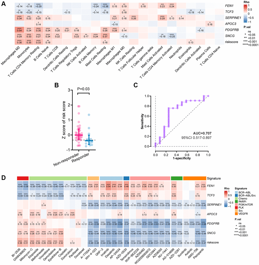We analyzed the response to pembrolizumab monotherapy in GC patients from the PRJEB25780 cohort. Based on the genomics of drug sensitivities in cancer (GDSC) database (https://www.cancerrxgene.org), we calculated the correlations (Spearman correlation analysis) of the half maximal inhibitory concentration (IC50) with the mRNA expression and the risk-score. The results are obtained by the “pRRophetic” (Version 4.0.2) and the “ggplot2” (Version 3.3.6) R packages. P values were adjusted by the FDR method.