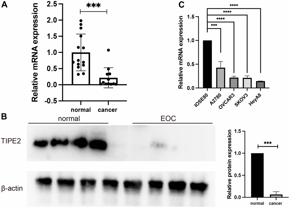 TIPE2 expression is significantly decreased in human EOC