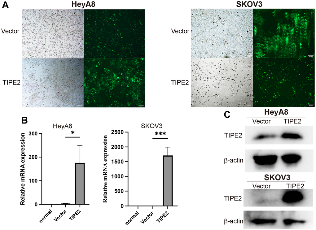 Endogenous overexpression of TIPE2 in EOC cell lines and treatment