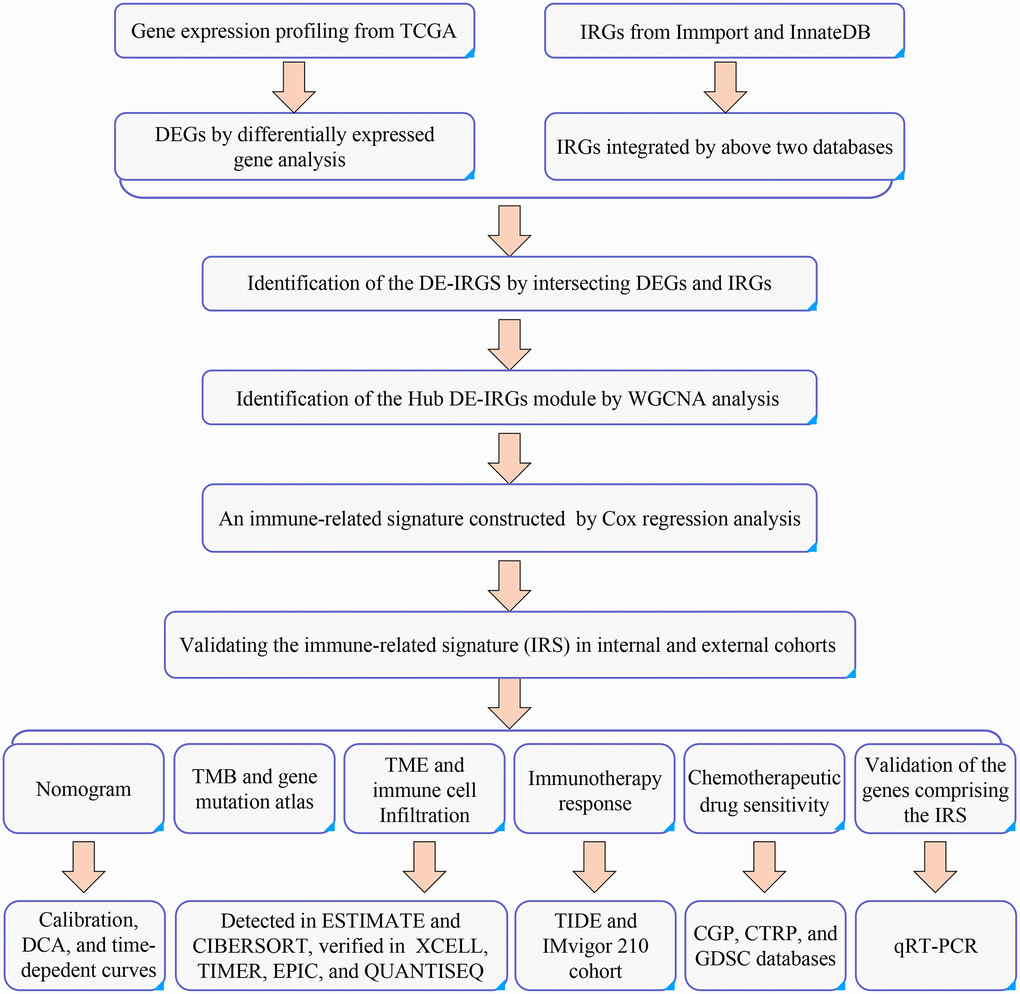 In the present study, we aimed to identify and validate a novel immune-related signature and a matching nomogram that can be utilized for predicting prognosis. This prognostic signature was conducive to the identification of immune infiltrating cells in the TME and assessment of immunotherapeutic response. Moreover, this immune-related signature was used for computing the IC50 of chemotherapeutic agents to predict the drug sensitivity.