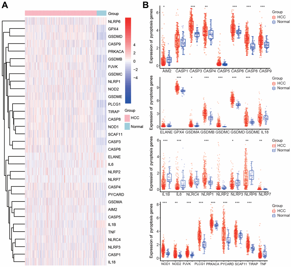 Liver cancer is the third leading cause of cancer-related death in the world, and its high incidence rate and mortality seriously threaten human health [1]. The HCC patients do not have obvious diagnostic symptoms at the early stage, so the opportunity for surgery may have been lost at the time of diagnosis, and the survival rate of HCC patients is still unsatisfactory [3]. Thus, it is urgent to deeply and systematically understand the molecular mechanism and open up new diagnostic strategies and treatment methods for HCC. Pyroptosis is a new form of regulated cell death (RCD) that causes cell membrane rupture and death via continuous cell expansion, resulting in the release of cell contents, which in turn activates a strong inflammatory response [11]. Compared with apoptosis, pyroptosis occurs faster and is accompanied by the release of a large number of proinflammatory factors, leading to the rapid death of cancer cells [31]. A growing number of studies have illuminated that pyroptosis-related molecules play a role in promoting tumor development and provide a new idea for the treatment of liver cancer [32–34].
