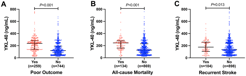 Table 2. Associations of YKL-40 levels with one-year clinical outcomes.