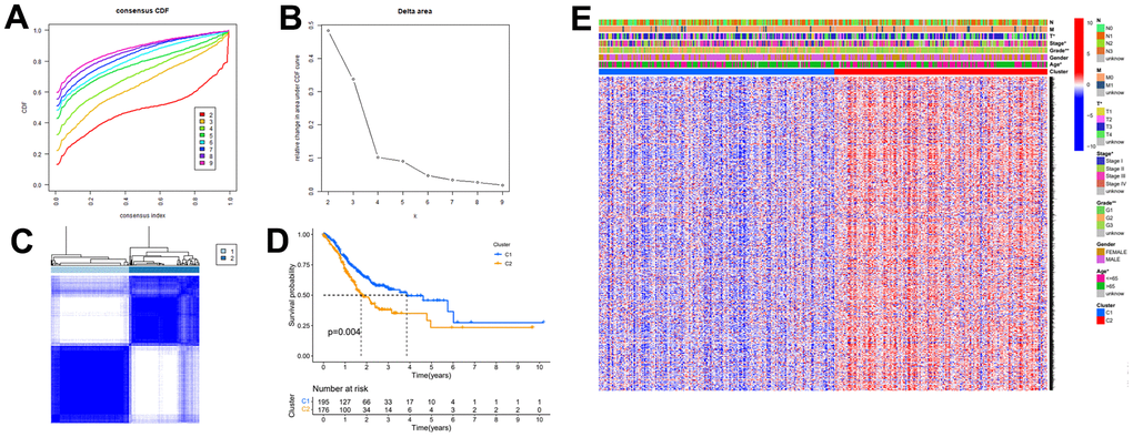 Table 1. Results of the consensus clustering analysis genes in the Univariate Cox regression analysis.