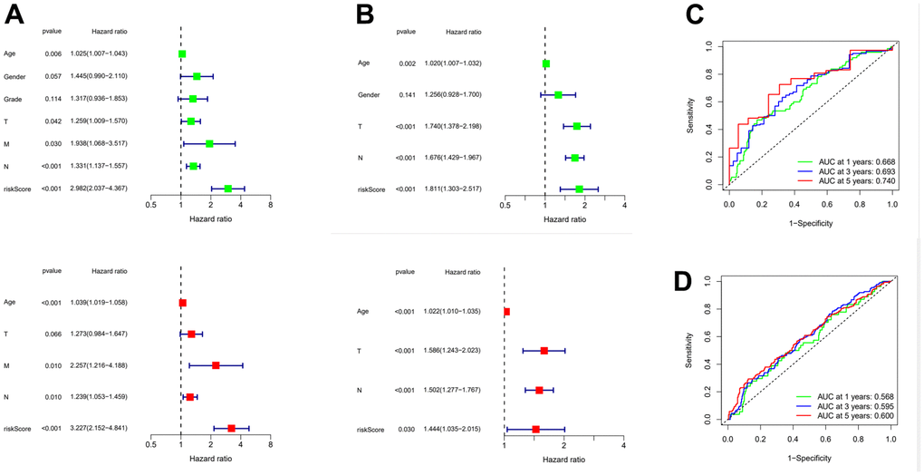 Table 3. Results of the risk score and clinical characteristics in the Univariate and Multivariate Cox regression analysis.